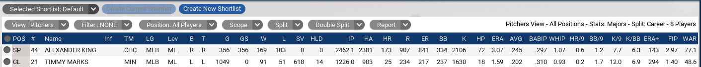 I'll do new prospects once this group retires. I will be posting a poll once one of the prospects retires to see how what universe we want to use for the prospects. Off the top of my head the choices will be "continue in this universe", "golden years start 1946", "the power years start 1993", or "2017 restart". Unless you guys have ideas on what you want to see.
