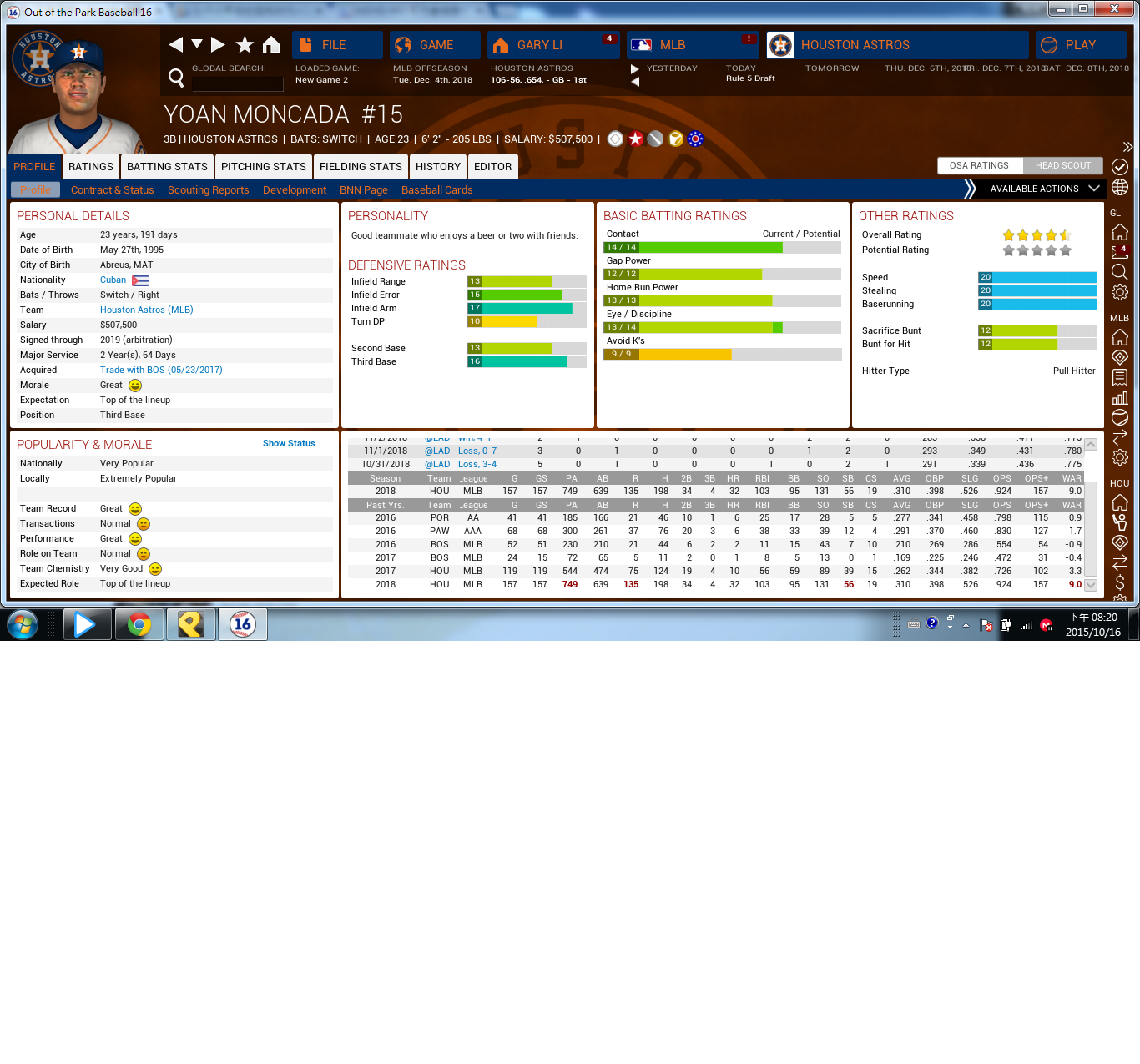 This news are still Incredible. 31.5m! My friend just post this pic, here is HIS Yoan Moncada: In 2018 , the 23 years old third baseman Yoan Moncada has 32hr-56sb and named the winner of American League MVP! He is top of the lineup and his WAR is 9.0, just amazing! How about your Moncada? Last edited by xw668; 10-16-2015 at 02:15 PM. |
