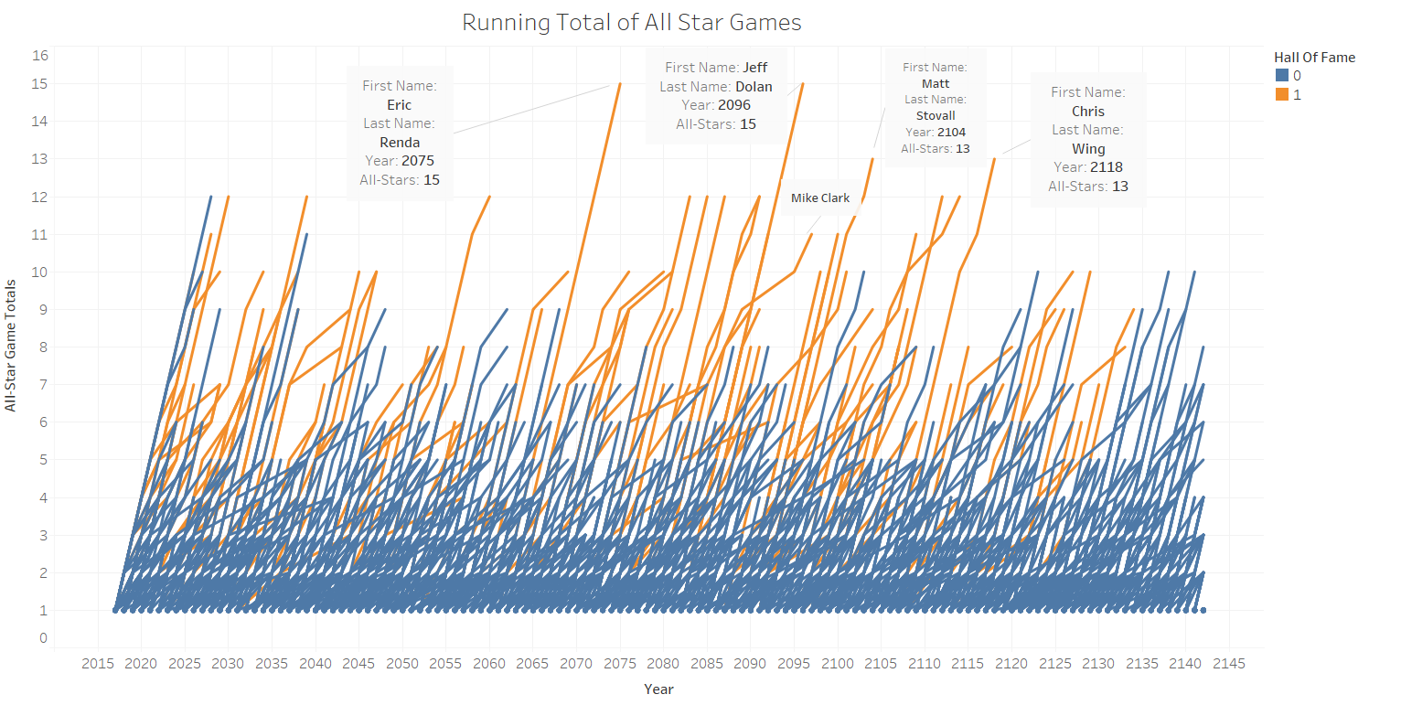 This graph is like the one above, but instead of Championships won the Y-axis displays all-star game appearances.