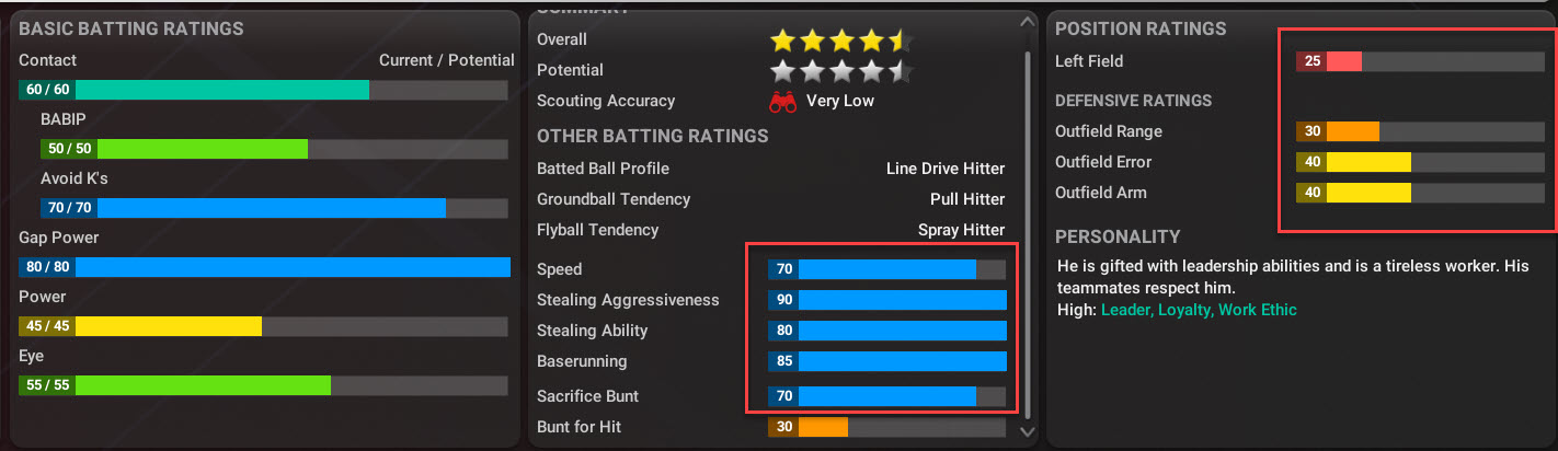 He is very fast at bat and on the bases but has horrible range in the field. Last edited by BPS; 03-21-2024 at 07:32 PM. |